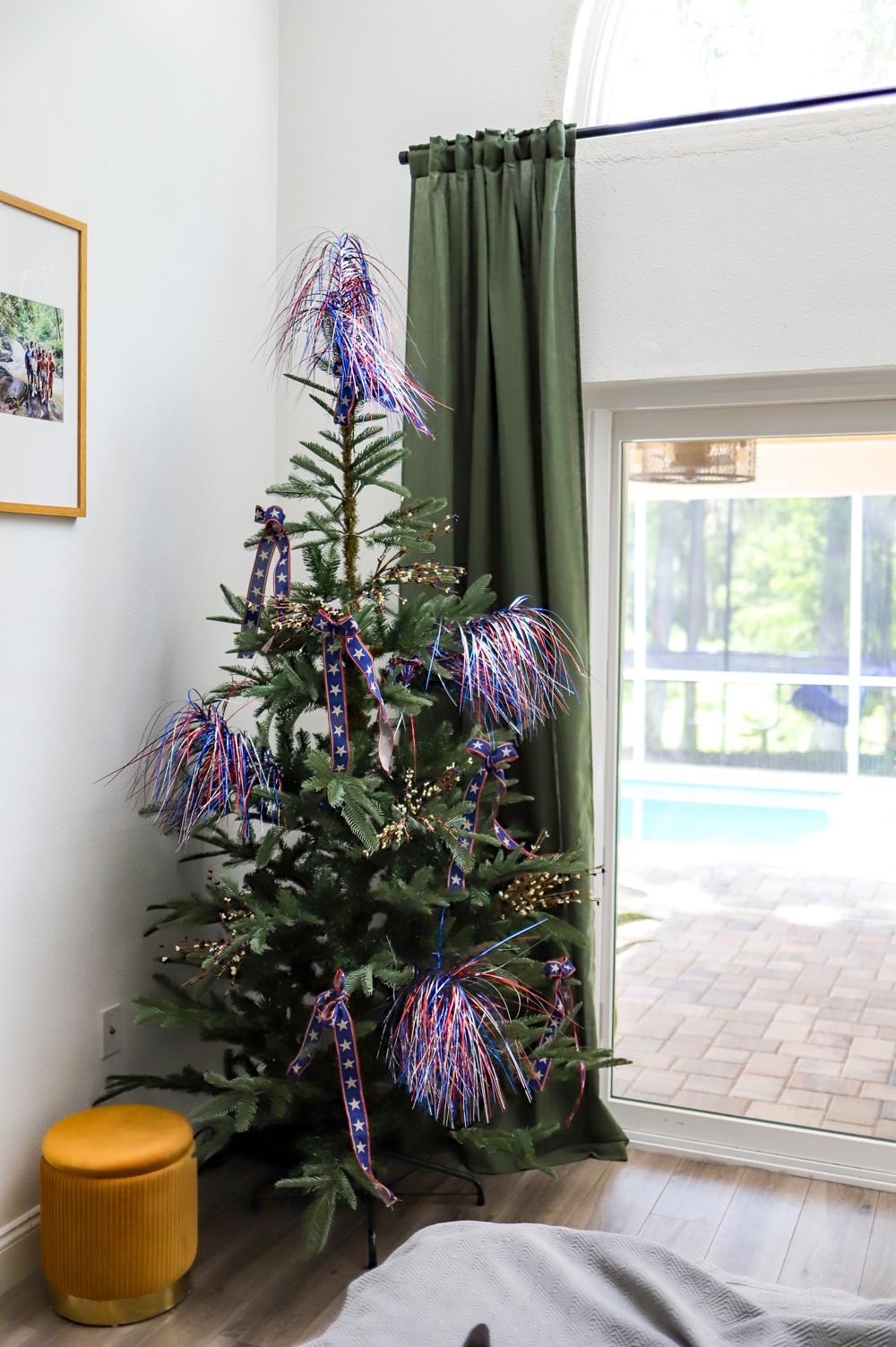 Another reason to invest in artificial tress is because you can set them up at any time and create a little magic and festiveness. Like putting one up peak summer and celebrating Christmas in July. I personally love the chance to enjoy themed activities, decorations, and even sales during the summer months. This year we decorated our newest tree from the King of Christmas Christmas in July sale with a patriotic theme. Super simple but fun and the kids love it.