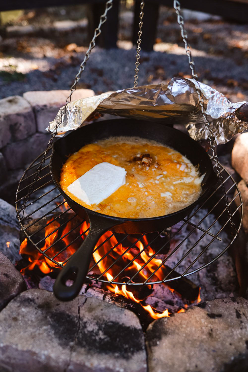 - Campfire Cooking – Pork Steak, Beer Cheese, Steak and Eggs