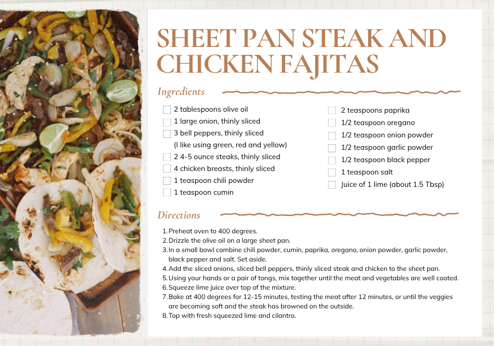 Sheet Pan Steak and Chicken Fajitas